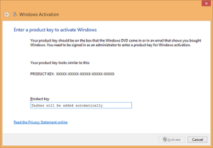 I recently installed Windows 8.  I used my company’s MAK Key which is a volume license key.  Everything installed just fine but I did notice it never asked me for my product key. On a domain, Windows 8 Enterprise automatically determines which servers to activate against using DNS.  This helps with managing your volume license easily.  Now, if you decide to do a 1 off install it will never activate correctly because it is missing the product key.  This is easily resolved.